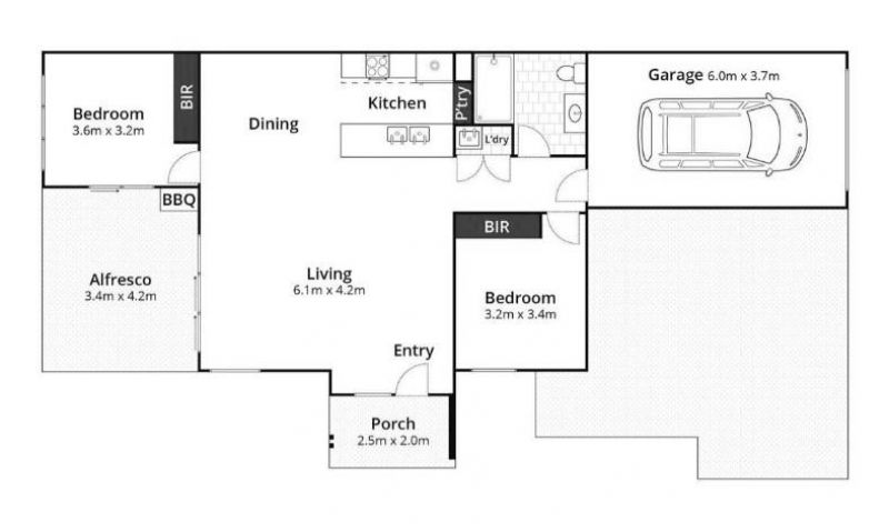 • Two generous bedrooms with built-in robes, complemented by a central bathroom.