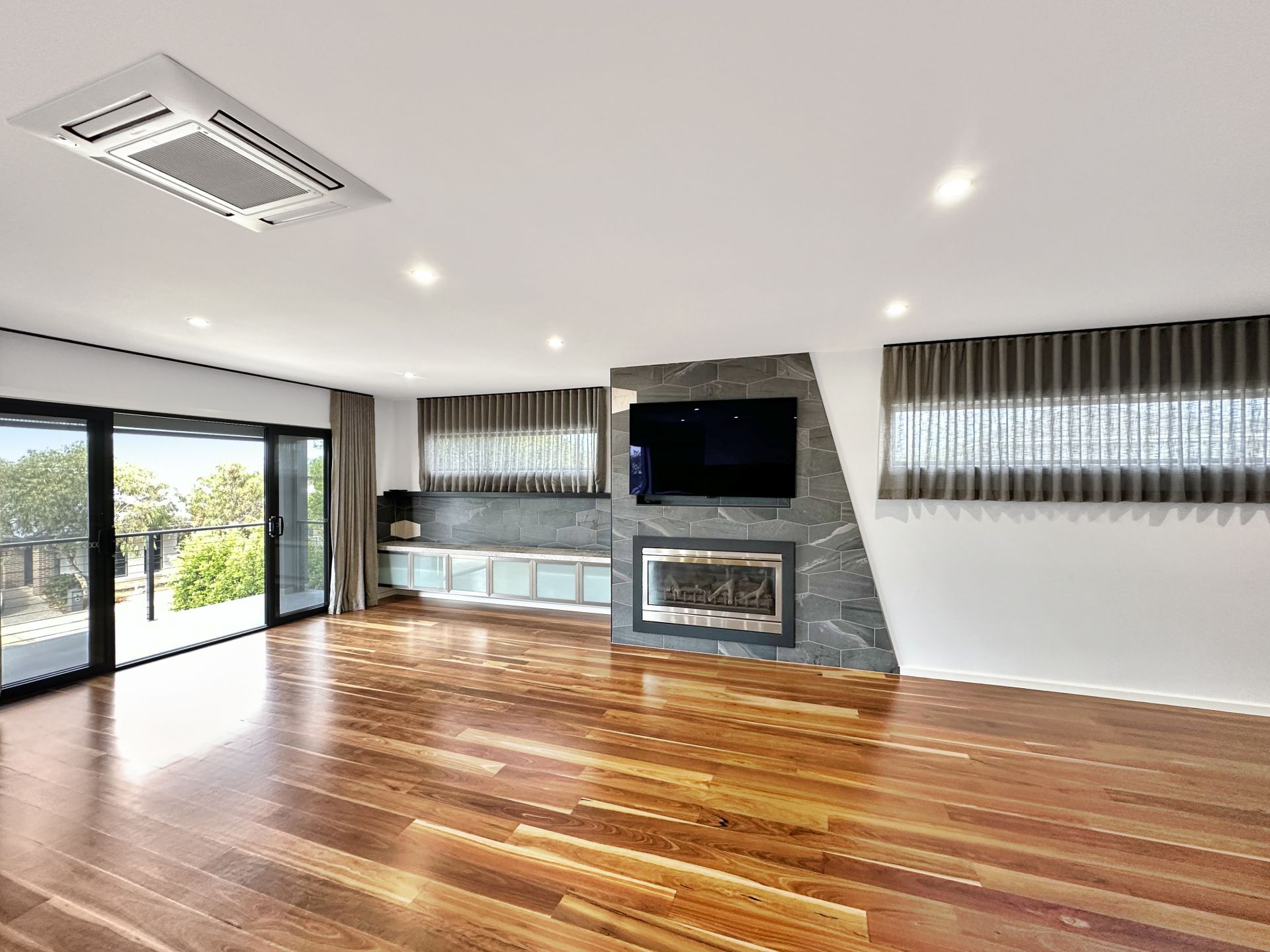 Entertainer’s Paradise: The upper-level open-plan kitchen, living, and dining space is the heart of the home—an ideal setting for both intimate evenings and lively gatherings. A striking gas fireplace adds warmth and character, while sliding doors open to a balcony with spectacular leafy outlooks and coastal views.