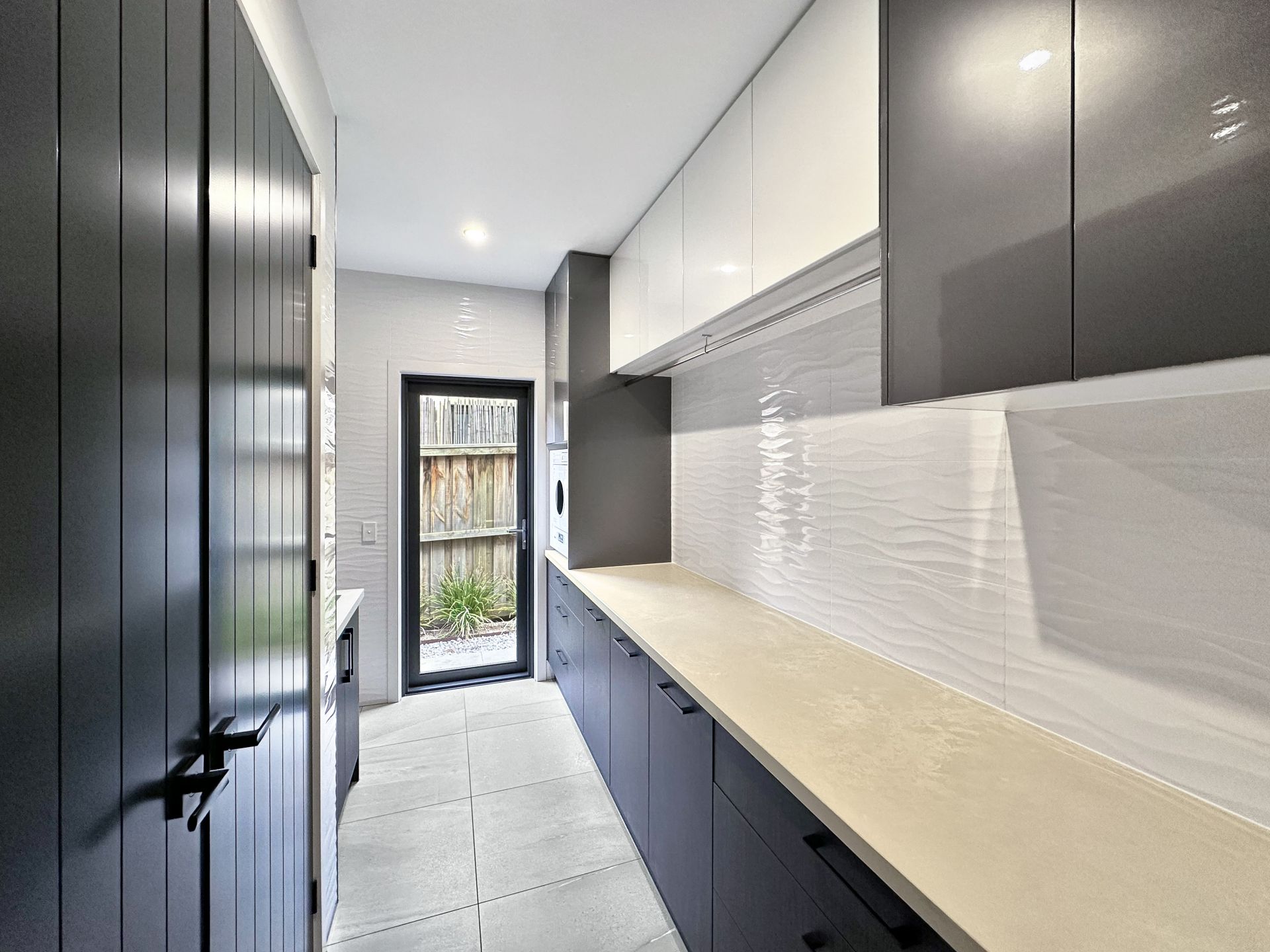 - Every detail has been considered—from extensive built-in storage and a top-floor laundry chute, to premium tiling and a home security system for peace of mind.