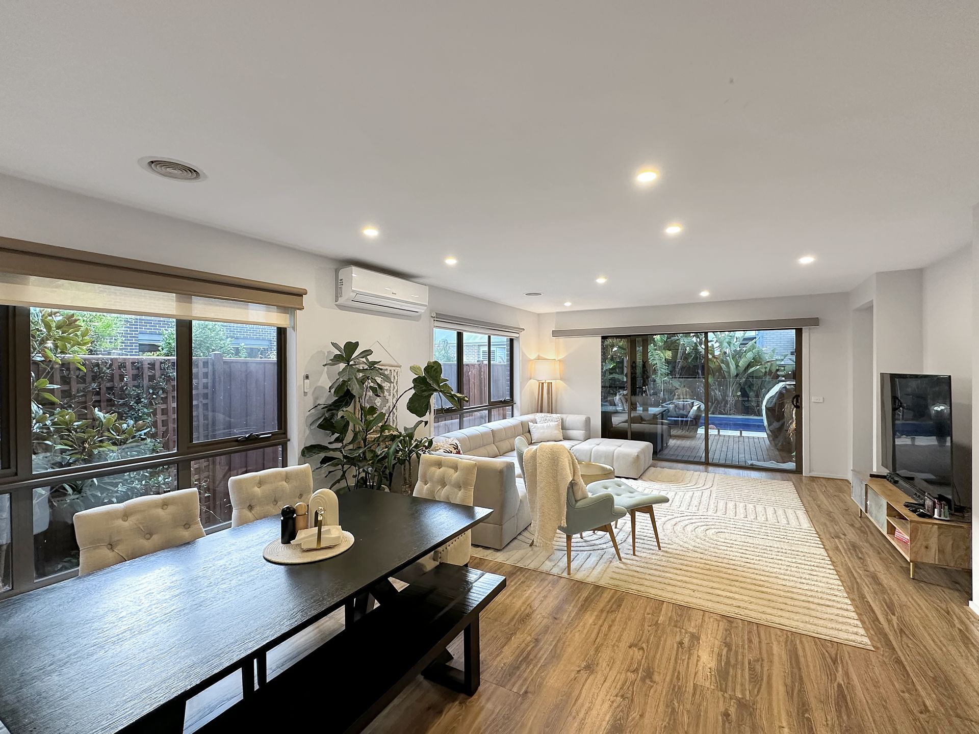 Designed for entertaining and easy family living, the expansive open-plan living and dining area extends to a private alfresco haven—perfect for sunset dinners or weekend gatherings by the pool.