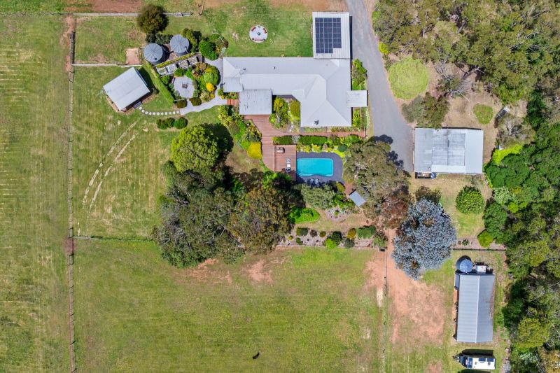 • Strong sustainability credentials with 7.77kW solar, approximately 100,000L of water storage servicing the house, studio and pool, dams with pump access, and established paddocks with water.