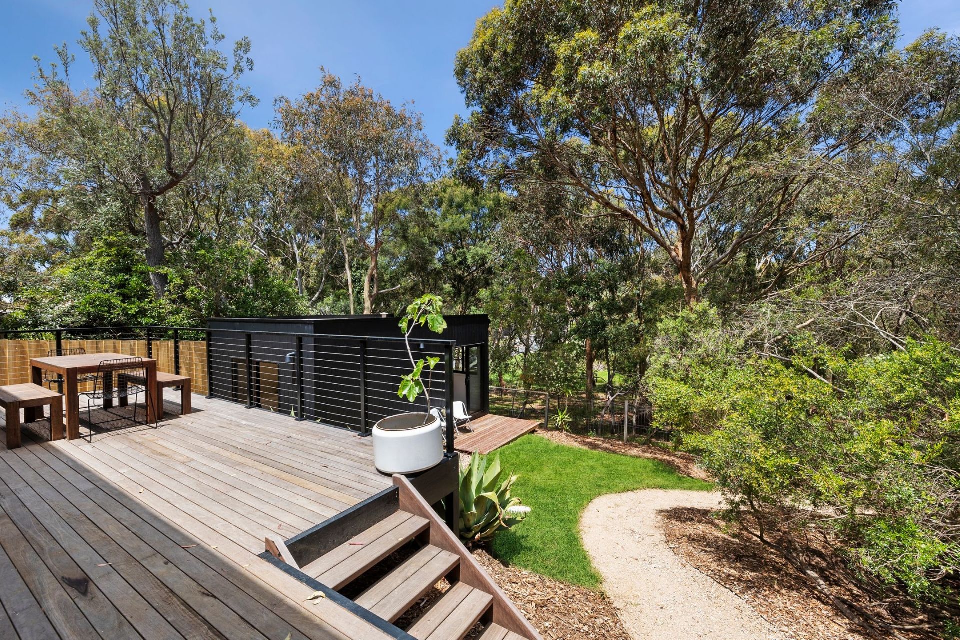 • The split-level design, offering a 2nd living area/den, a sun-kissed courtyard & a charming self-contained bungalow – ideal for Airbnb or as a guest/teen retreat.