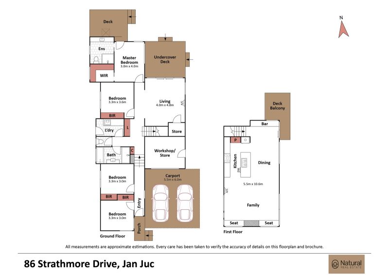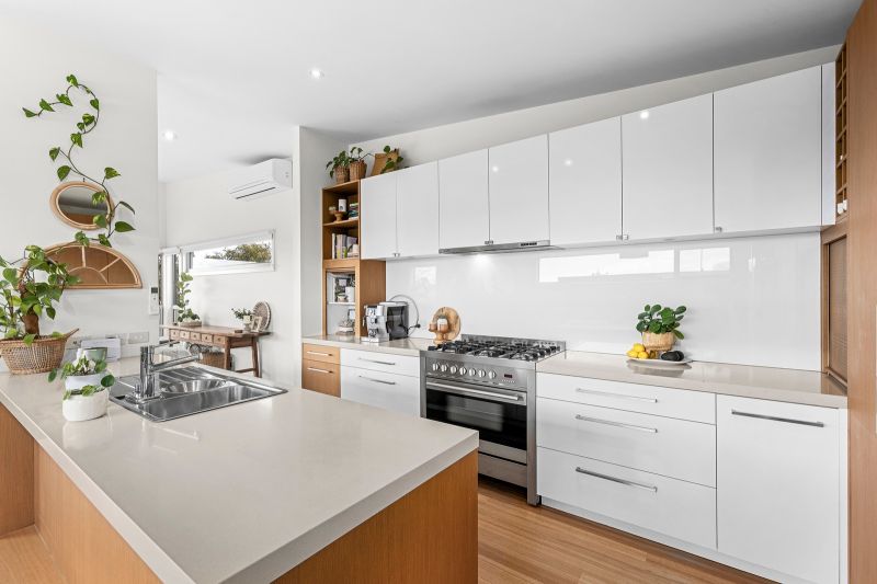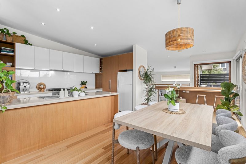 • Flexible living spaces across two levels: a sun-drenched family hub upstairs, & a ground-floor rumpus that spills on to the north-facing deck, garden, & cubby house.