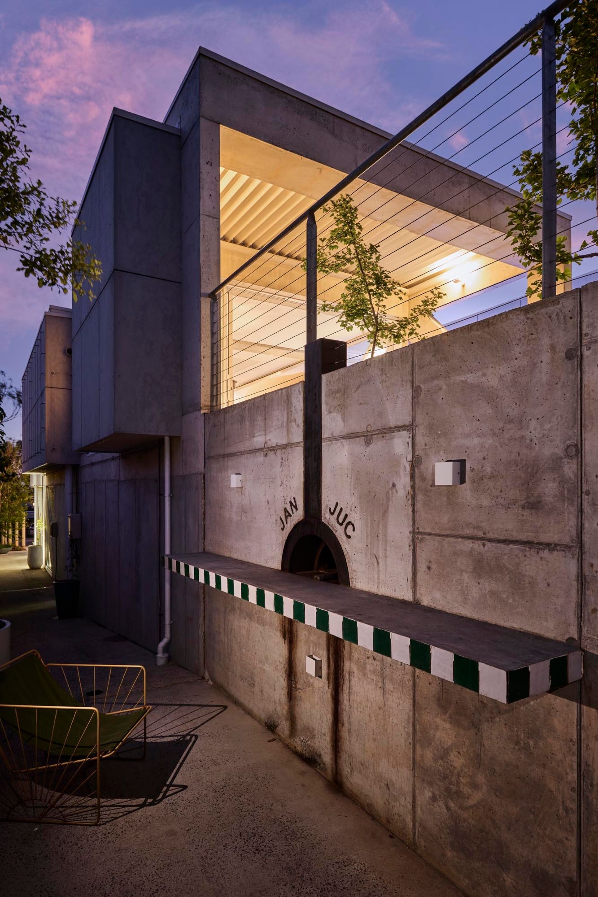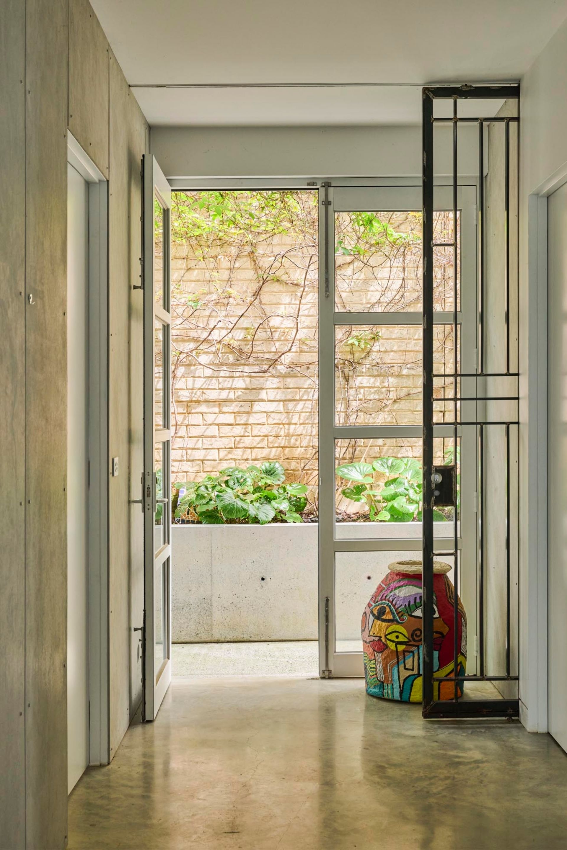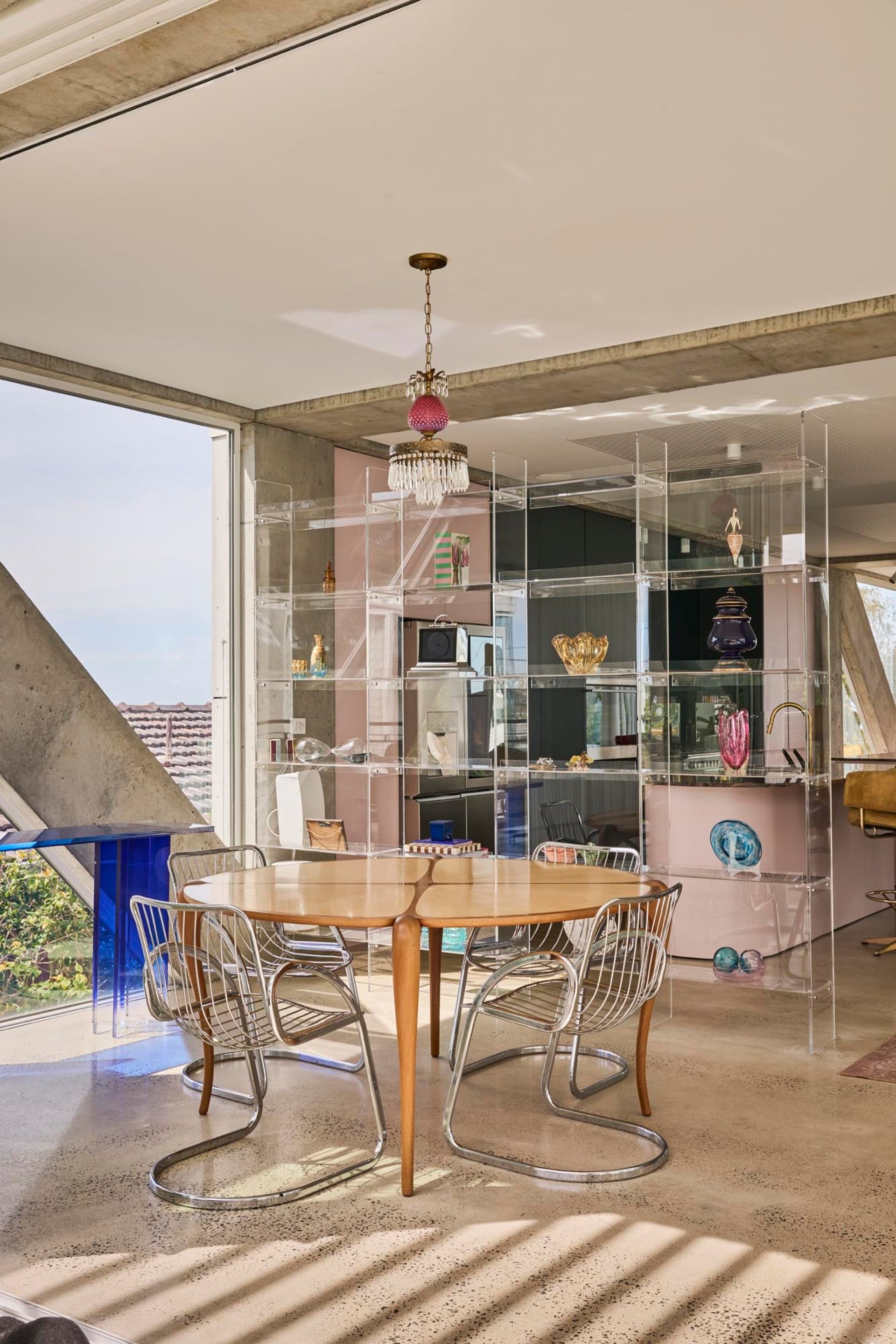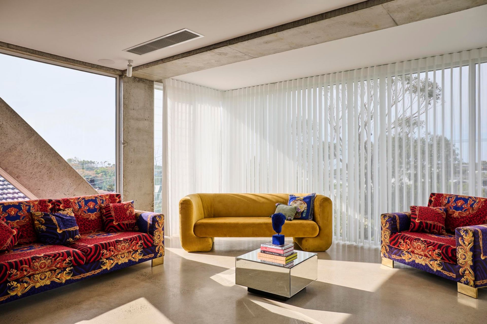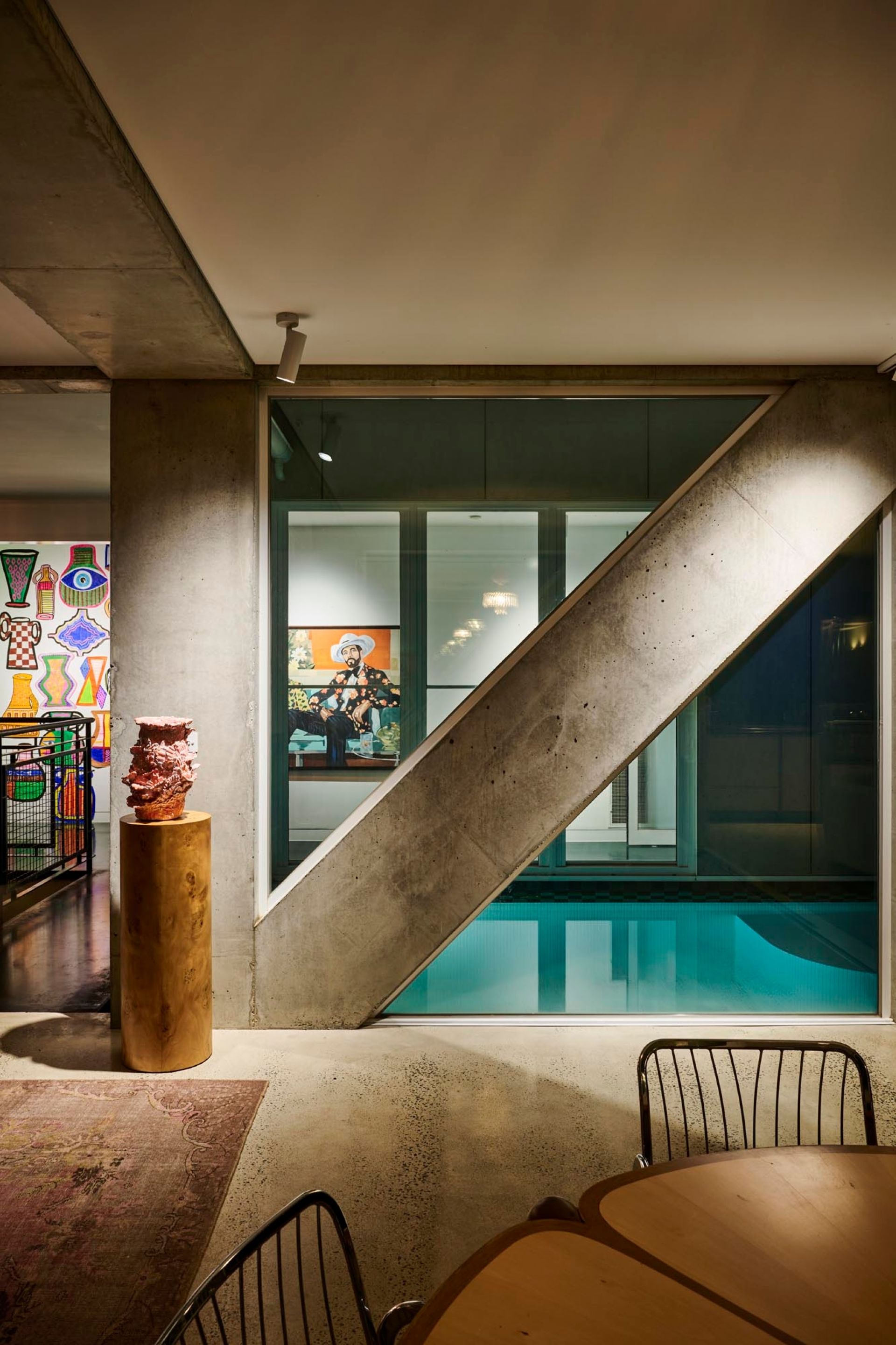 • This bold architectural masterpiece where Brutalist sculptural concrete forms meet a refined palette of glass, mirror & brass, blending a striking industrial presence with timeless sophistication.