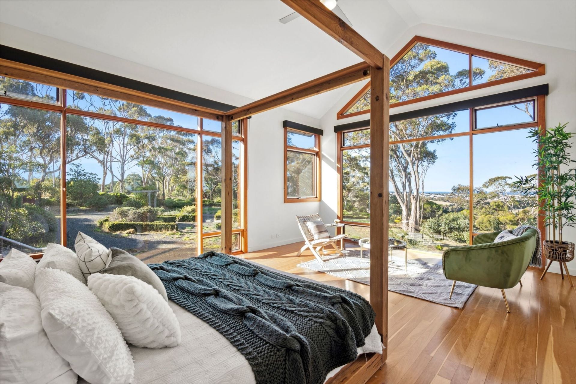 • Floor-to-ceiling windows, soaring ceilings & timber underfoot, bringing light, warmth & the landscape into every room.