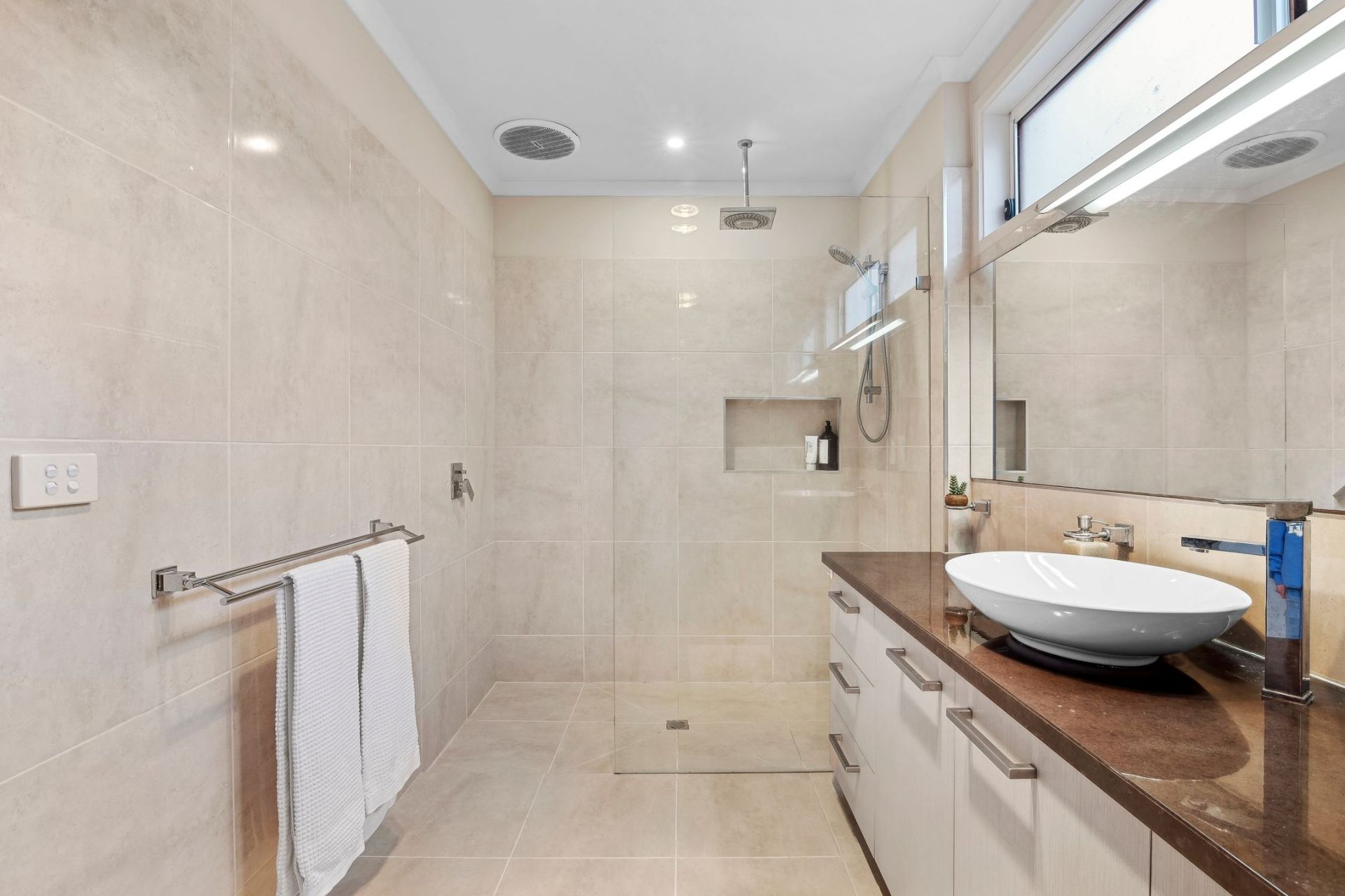 • Admiring the ocean views & green treetop outlooks from the open plan living, kitchen & dining area, flowing out to an extensive north-facing entertainer’s deck.