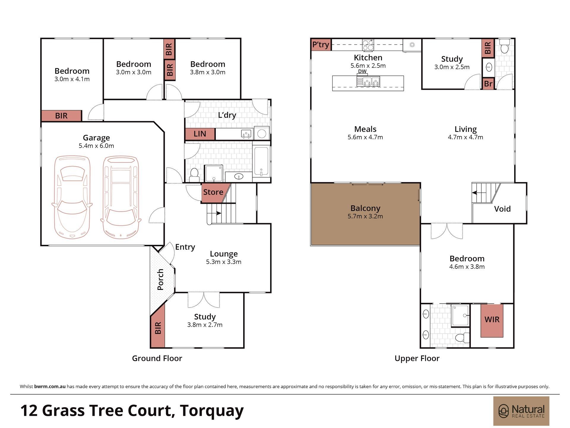 • Relaxing in the spacious master retreat featuring WIRs & a sleek ensuite, along with 3 downstairs bedrooms with BIRs, serviced by a bright family bathroom.