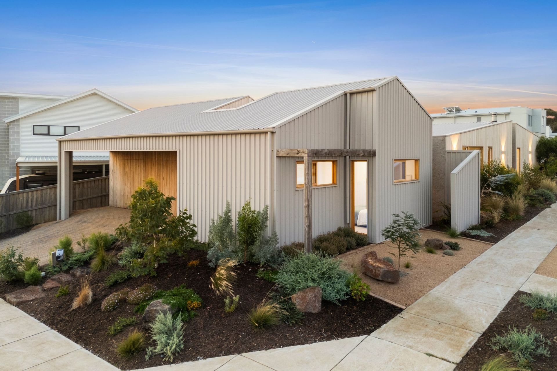 • The contemporary coastal design, a flawless fusion of timber, concrete, brick & metal, accentuated by soaring ceilings & extensive double-glazed windows.