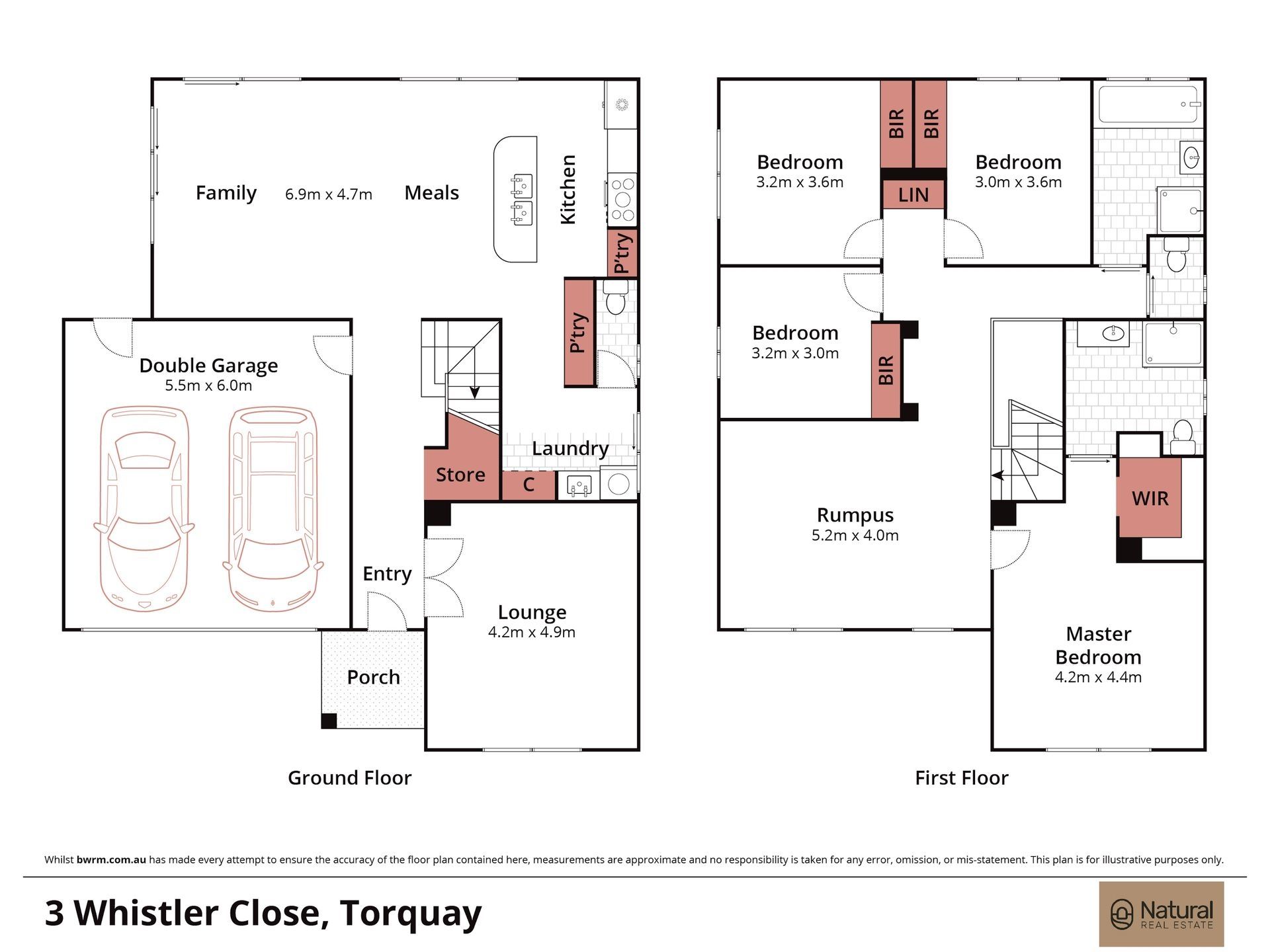 • A spacious master retreat with WIRs & deluxe ensuite, complemented by 3 additional generously sized bedrooms with BIRs, all serviced by a central bathroom with a bathtub.