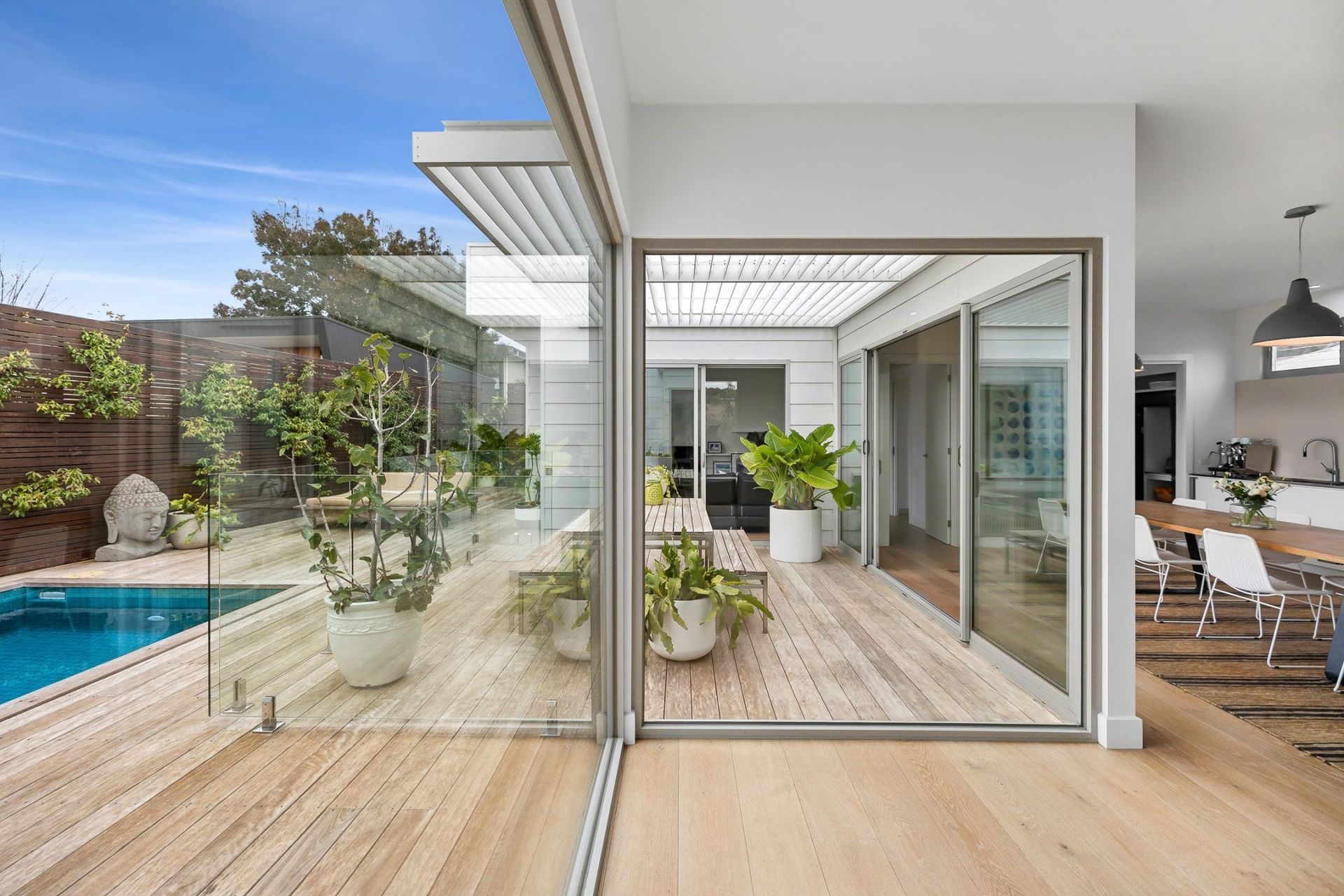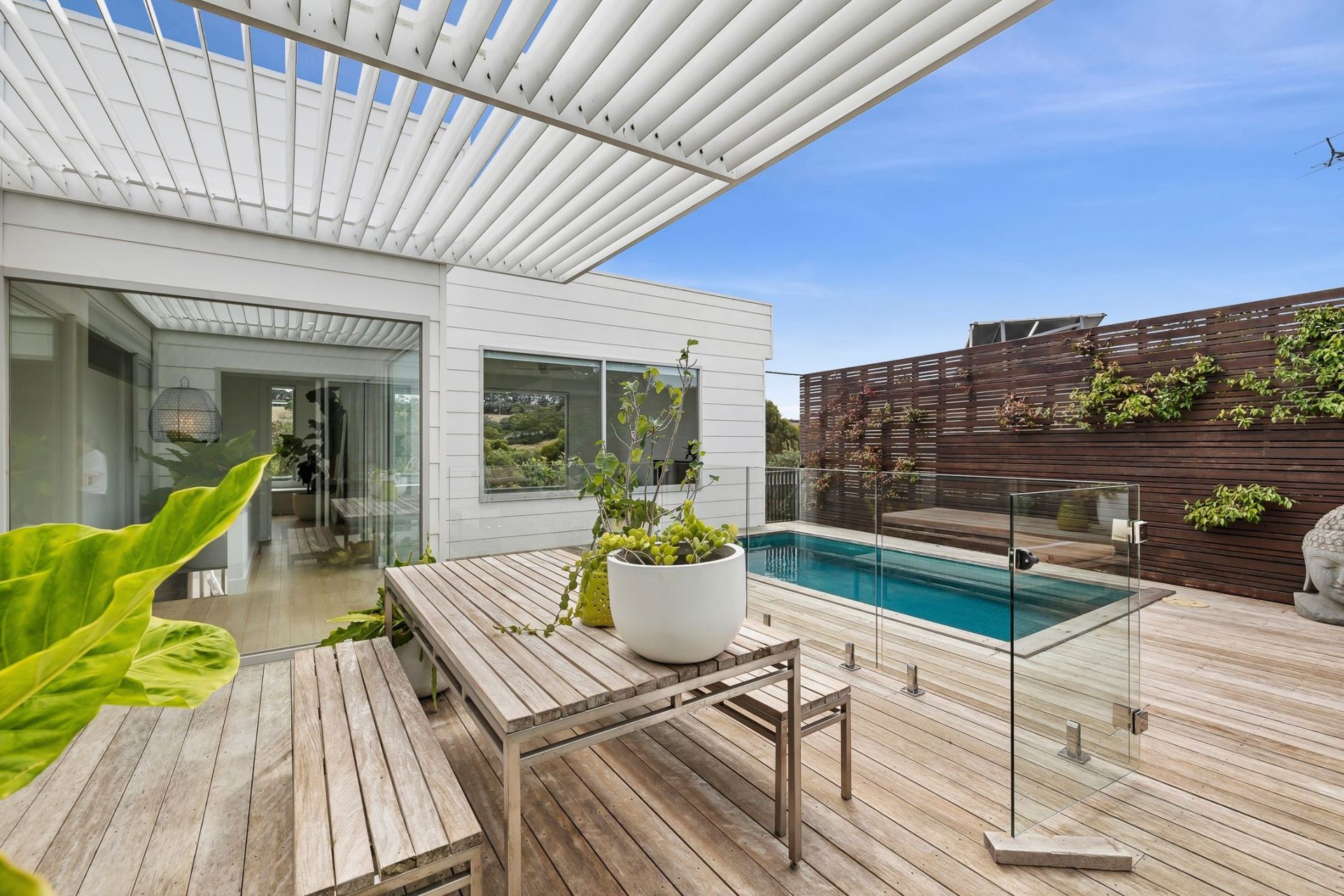 • Soaking up the sunshine on the large private deck, perfectly connected to the main living zone & wrapped around a sparkling, solar-heated saltwater pool.
