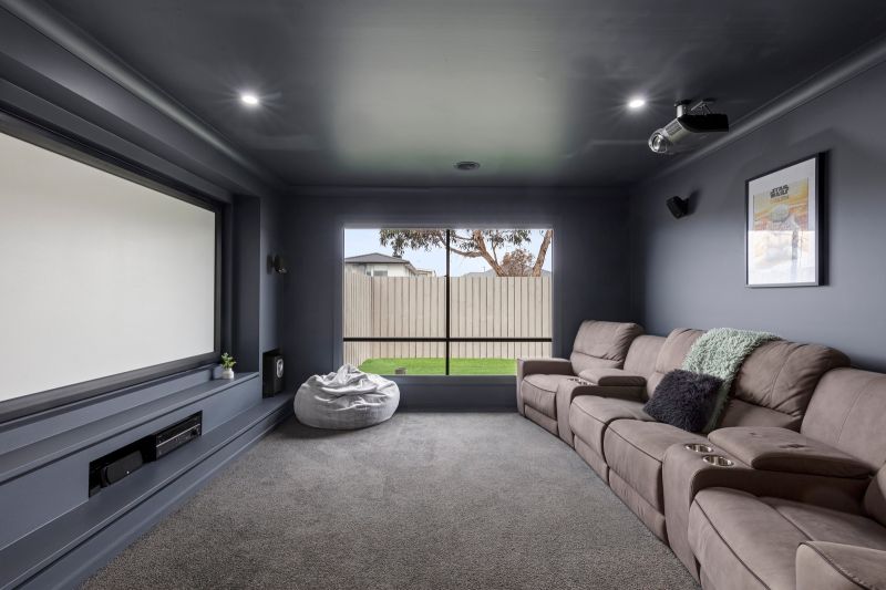 • The family-focused layout with three separate living zones, including an impressive theatre room with projector, plus a kids’ rumpus that can be closed off.