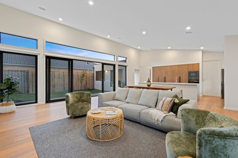 • The sun-kissed living zone, with soaring raked ceilings (up to 4.6m) & expansive glass sliders opening to a north-facing garden, landscaped with native plants.
