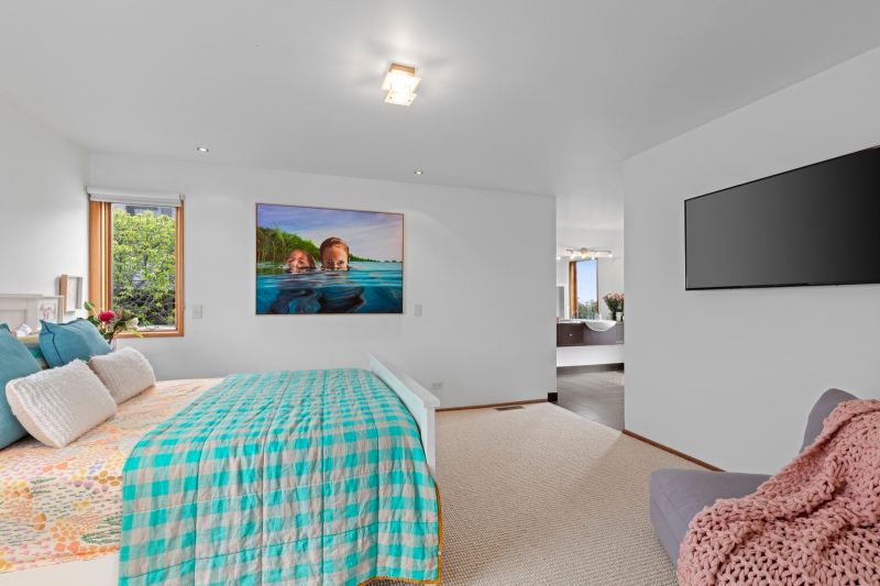 • Unwind in the master suite, enhanced by WIRs, ensuite with luxe spa bath & tranquil ocean views, complemented by a 2nd upstairs bedroom with BIRs.