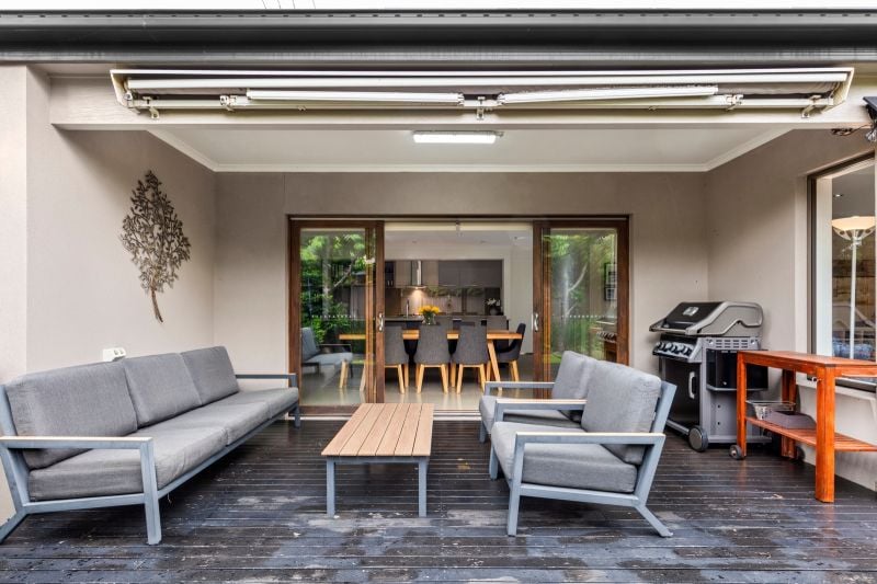 • Easy-care, peaceful outdoor area with pull out awning that invites entertaining, offering space to unwind, host friends, or enjoy lazy days in the sun.