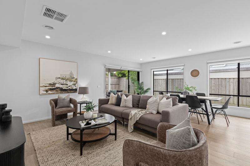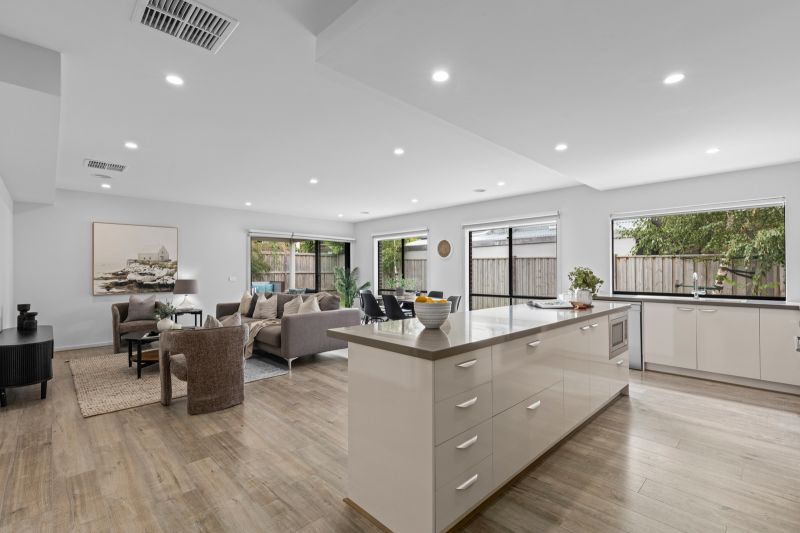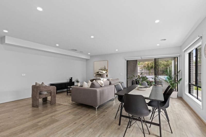 • Stepping into the sunny north-facing open plan living zone, flowing seamlessly from kitchen to dining to the undercover alfresco for year-round enjoyment.