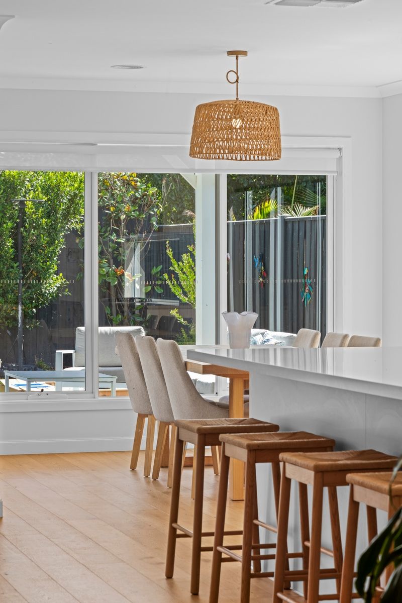 • Stepping into a beautifully light-filled coastal interior, where timber floors, plantation shutters & soft neutral tones create a calm Hamptons-inspired atmosphere.
