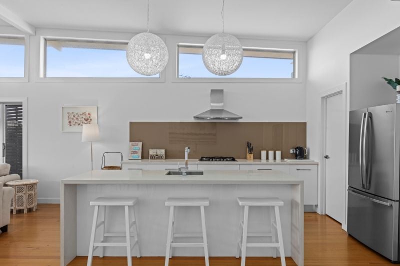 • The striking sense of scale & warmth, with high ceilings, rich timber floors, & a beautifully light-filled interior that enhances the home’s relaxed coastal feel.