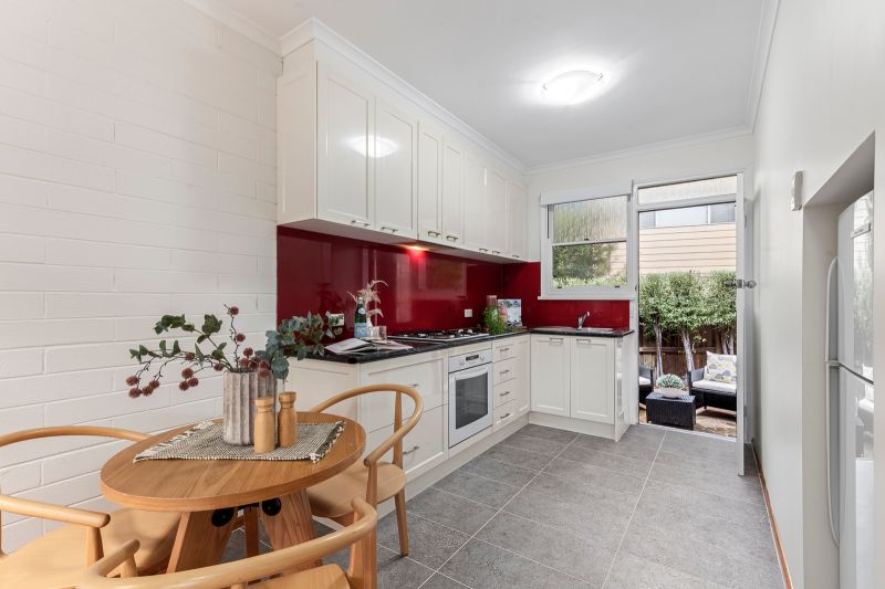 • A light-filled north-facing living hub with electric heating & adjoining meals/kitchen zone featuring an electric oven, gas cooking, & direct courtyard connection.